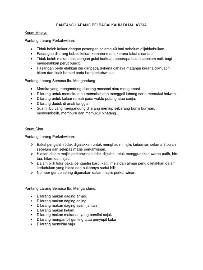 Ada banyak amalan yang berkembang dalam masyarakat kita yang. Terlebih jika dalam jumlah yang cukup banyak. Kalau sudah terasa kurang enak tenggorokannya, sebaiknya jangan minum air es dulu ya, ma. Ibu hamil harus menjaga pola makan. Pantang larang orang melayu tradisional merupakan kepercayaan masyarakat melayu zaman lampau berkaitan dengan adat dan budaya warisan nenek moyang.